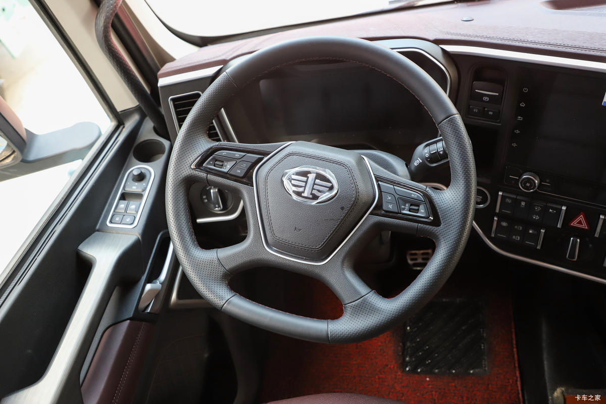 除此之外,该车还配备轻量化的铝合金车轮,使用295/80R22.5规格的低滚阻轮胎。值得一提的是,整车还配备了盘式制动器,这不仅改善了刹车感应,还增强了在长期使用下对抗热衰减和变形的能力。