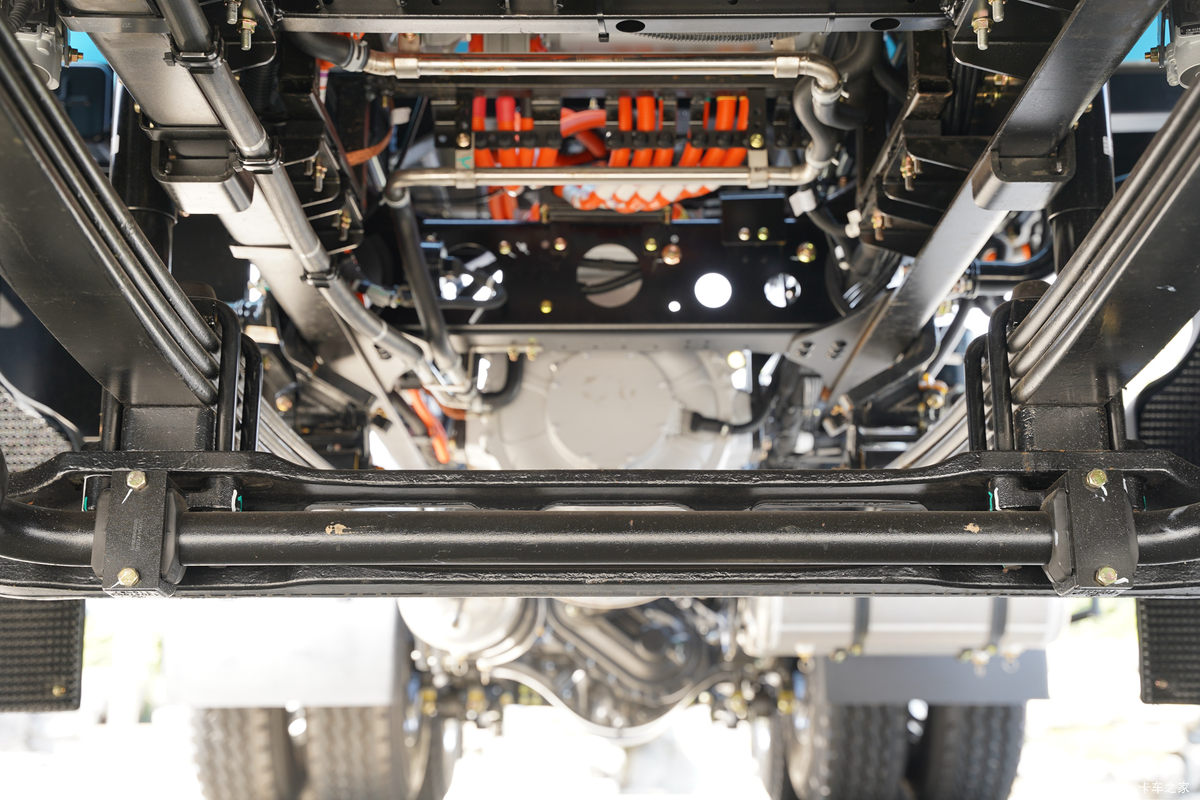 同时,驾驶室悬置系统采用溃缩式吸能设计,能在碰撞时保障人员安全。此外,车辆还配备了电加热后视镜、前碰撞预警、车道偏离预警、蹄片磨损报警以及360环视等主动安全措施,大大提升了行车安全性。