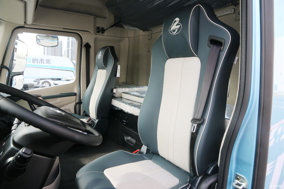 该车采用双拼色仿皮气囊减震座椅,配备座椅加热和通风功能,无论严寒还是酷暑,都能为驾驶员提供舒适的乘坐体验。