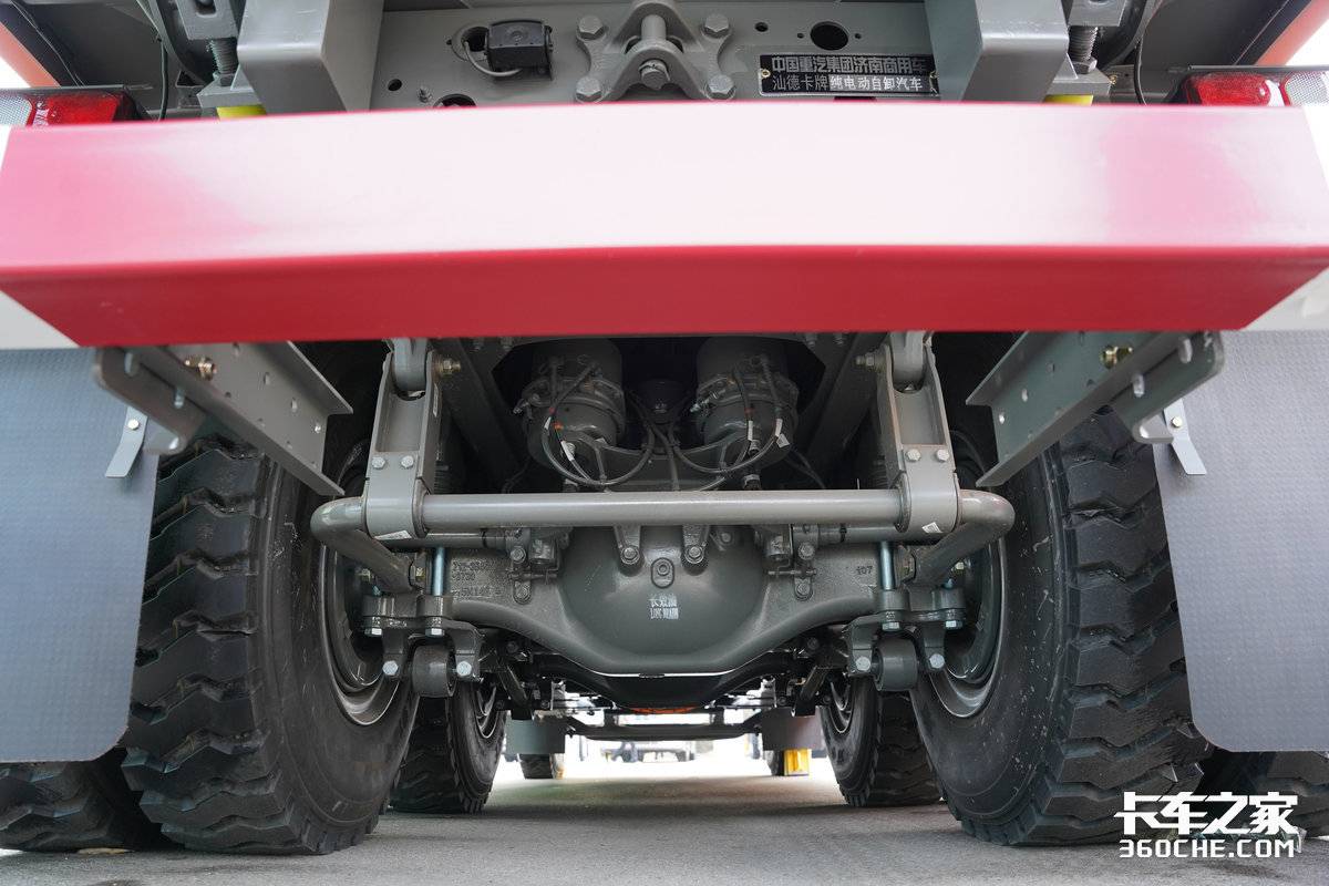 后桥采用曼技术MCP28ZG自调臂双后桥(鼓式制动),承载与制动性能可靠。轮边减速桥的桥壳更小、离地间隙更高、通过性更好。